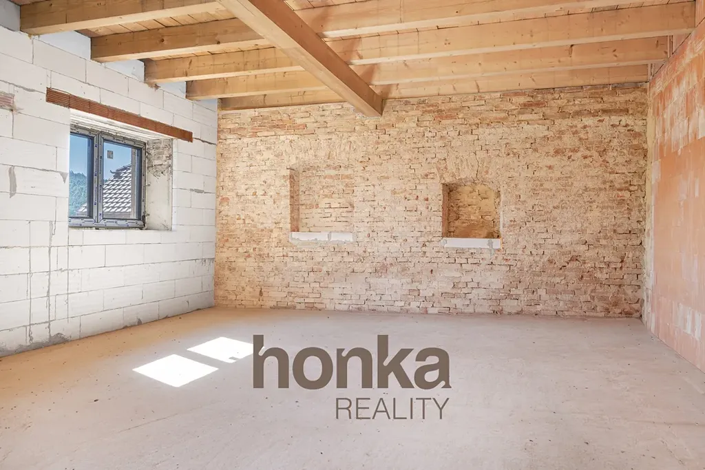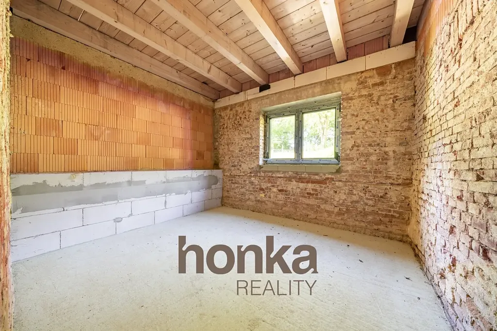 Dům má dvě nadzemní podlaží a sklep o velikosti cca 10 m². Jsou zde již nová plastová okna i hotová střecha. Připraveno k dokončení dle představ budoucích majitelů.