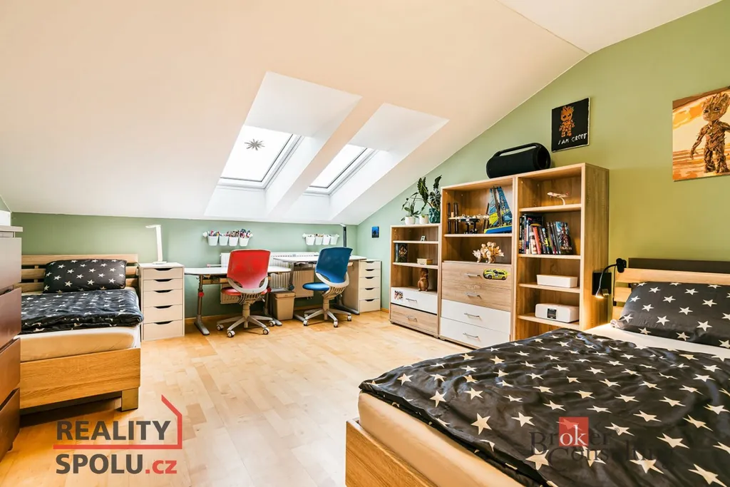 Hlavní výhodou mezonetu je dokonalé oddělení soukromí. V patře najdete dětský pokoj a ložnici, koupelnu se samostatným WC a velkorysou komoru o rozloze 8 m², která poskytuje více úložného prostoru, než nabízí většina bytů v této kategorii.