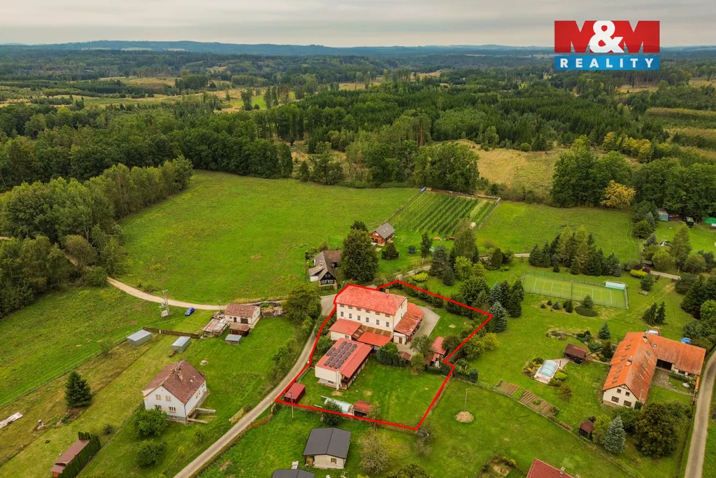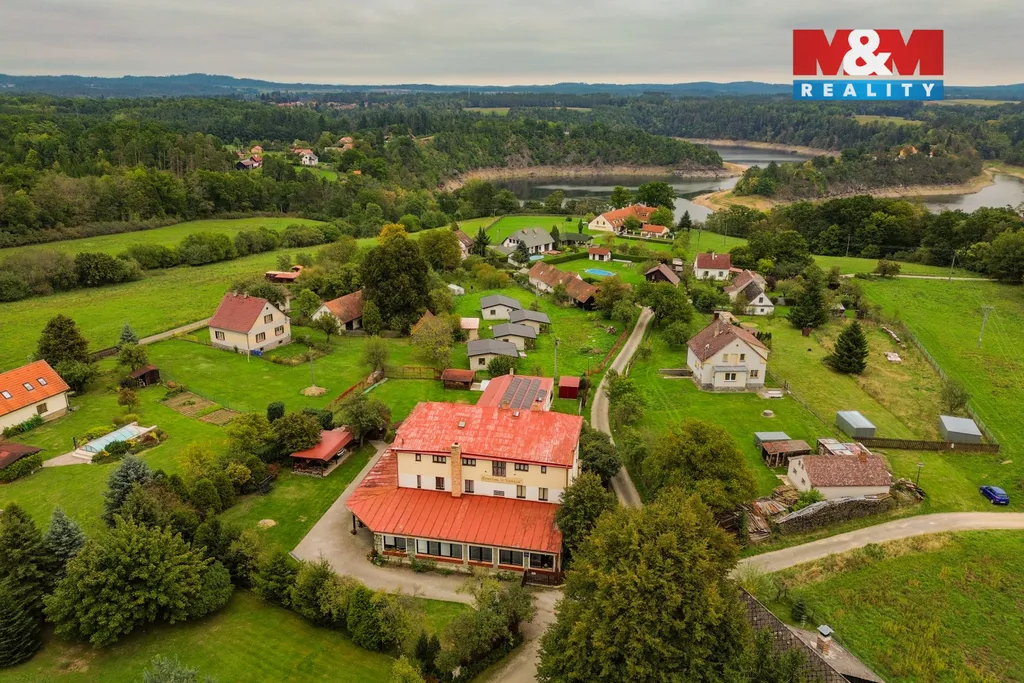 Nabízíme k prodeji jedinečný rodinný penzion(1058m2), který se nachází u Orlické přehrady v krásné jihočeské krajině uprostřed lesů, 600 m od řeky Otavy a 4 km od hradu Zvíkov, ve vesničce Štědronín. Zavedený penzion nabízí ideální příležitost pro investory a podnikatele. Skládá se ze dvou budov. V hlavní budově je restaurace s barem, výčep, kuchyně, sklad, kotelna a byt 3+kk, který je vytápěn samostatně tep. čerpadlem. V prvním patře najdete 5 apartmánů s vlastním sociálním zařízením. Ve druhém patře je 8 pokojů s WC a sprchami na chodbě.Ohřev vody řešen bojlerem. Vytápění centrální od dvou samost. kotlů na dřevo a pelety + elektrokotel.