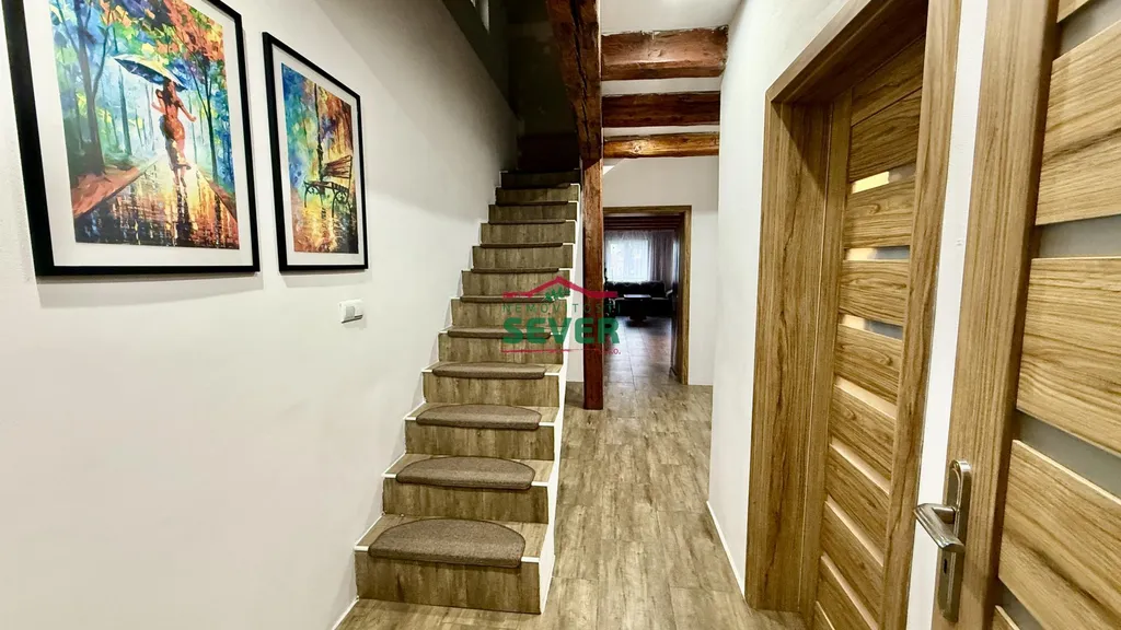 Nemovitosti SEVER vám zprostředkují koupi rodinného domu v obci Nečichy v okrese Louny. Rodinný dům má v současnosti dvě obytné jednotky se samostatnými vstupy. První byt je patrový, dispozičně řešený jako 5+1 s možností dokončení další půdní vestavby. V přízemí bytu je vstupní chodba, kuchyně, obývací pokoj s krbem s připraveným výměníkem, koupelna s WC a ložnice s prostornou šatnou. V patře bytu je velký dětský pokoj, menší pracovna, příprava na koupelnu a další pokoj, který je připravený k dokončení, elektřina, voda i rozvod vytápění je zde připravený. Z pokoje je vstup na půdu, kde je možné vyhotovit další obytné místnosti. Druhý byt se samostatným vstupem je přízemní, používaný jako pokoj pro hosty. V bytě je obývací pokoj s kuchyňským koutem, koupelna se sprchovým koutem a WC a prostorná ložnice, byt je možné využívat i jako provozovnu. K domu náleží velmi prostorná garáž s dílnou o výměře 70m2, která je zčásti podsklepená. Součástí prodeje je zahrada o výměře 1.356m2. Na zahradě jsou okrasné stromy a keře, okrasné jezírko s kapry, skleník, dřevníky a příprava pro koupací jezírko. Přímo u domu je altán s posezením, kůlna na dřevo a kotec pro psa. Dům je zateplený, má nová plastová okna, novou střechu, nové rozvody elektřiny i vody. Vytápění domu zajišťuje automatický kotel na uhlí, pro vytápění je možné využít i výměník v krbu v obývacím pokoji, ohřev vody je kombinovaným bojlerem. V případě zájmu zajistíme našim klientům financování pro koupi této nemovitosti.