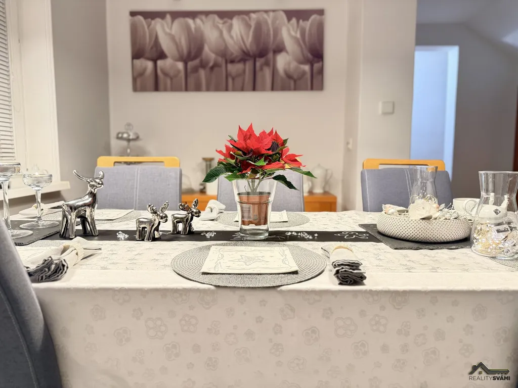 V Nemovitosti může zůstat kompletní vybavení na míru, zabezpečovací systém, nebo například vestavěné domácí kino. Není to ovšem podmínkou a nemá to vliv na prodejní cenu.