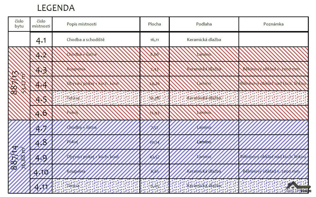 1NP – 3+kk, 72,68 m² + sklep 8,20 m² + balkon/terasa 5,95m², cena 4.730.000,-Kč