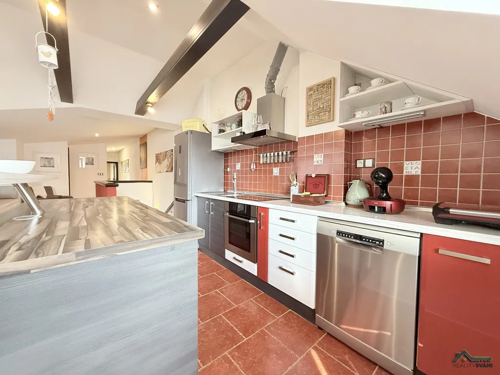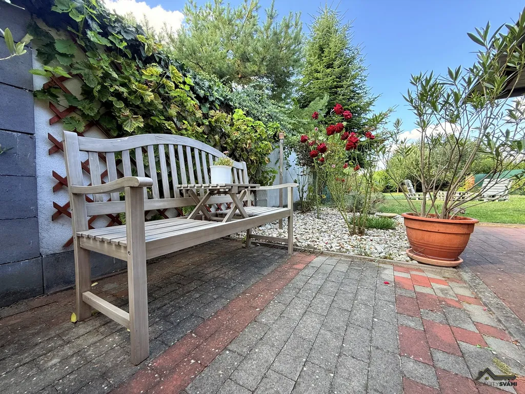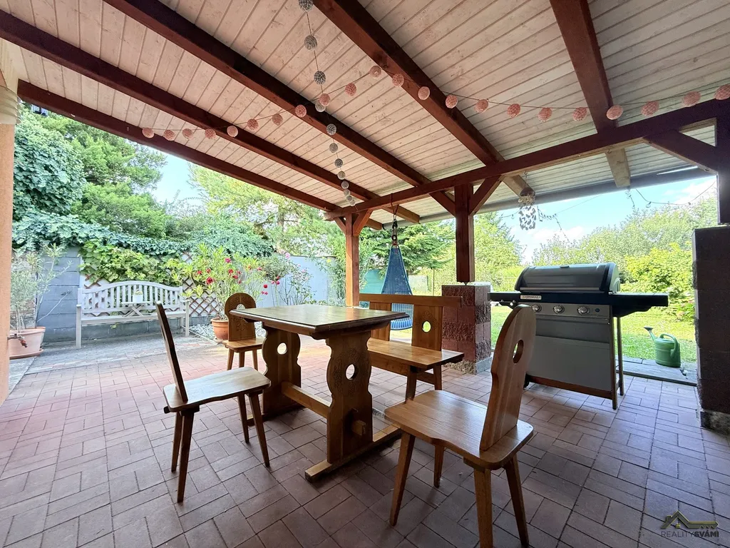 Dům je velmi útulný, kdy ve spodním patře jsou pokoje, koupelna a wc a ve vrchním patře otevřený vzdušný obývací pokoj s kuchyňským koutem, samostatná ložnice a nechybí ani zde koupelna a samostatné WC. Kouzlo bydlení umocňuje přiznání střešních trámů a nádech podkroví ve vrchní části. Zahrada s již zmíněnou venkovní kuchyní a krytým posezením je obrostlá stromy a nabízí klidné posezení. Nechybí ani ovocné stromy, nebo květiny. Své kouzlo má i kamenem obložená studna.