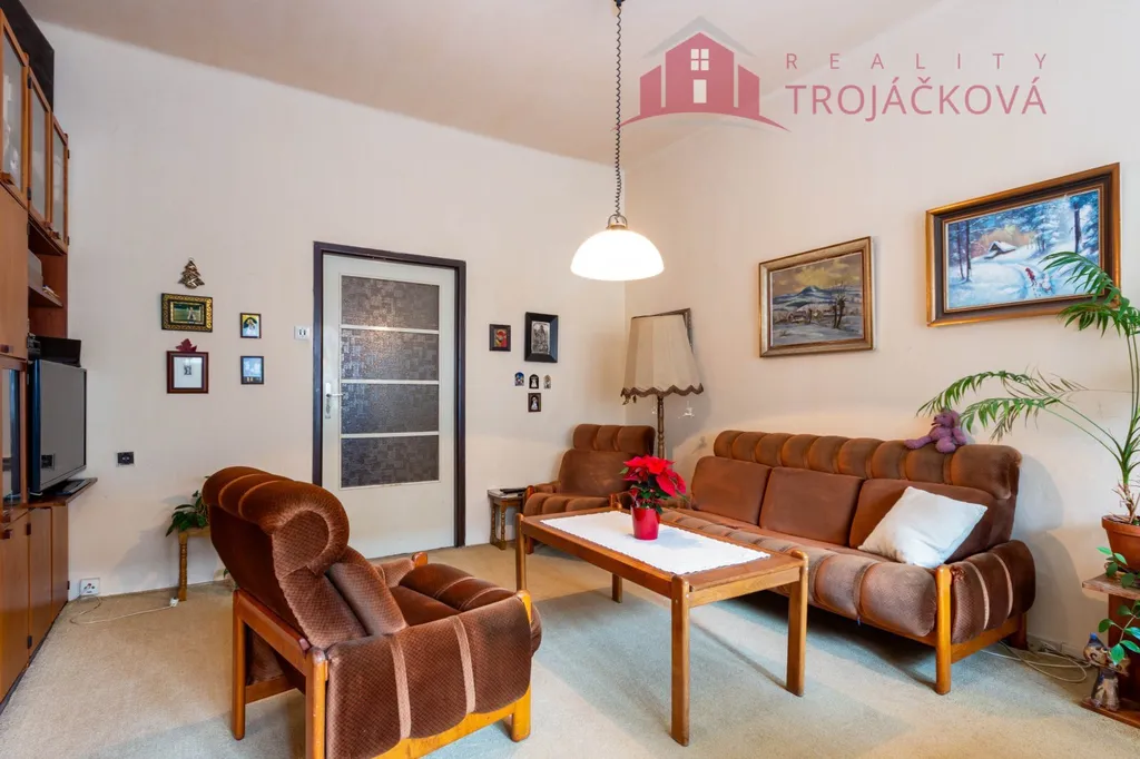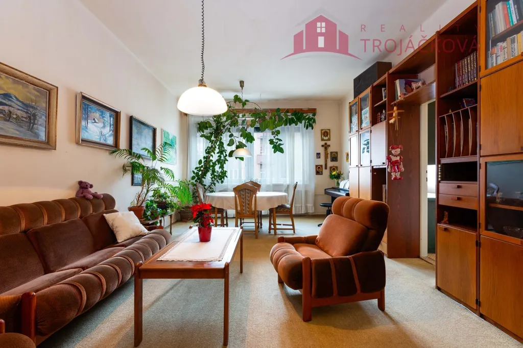 Dispozice bytu je velmi praktická. Po vstupu do bytu vejdeme do prostorné předsíně/haly/ s originálním kazetovým stropem. Z předsíně je samostatný vstup do obývacího pokoje a dětského pokoje s balkonem. Ložnice je dostupná, jak z obývacího pokoje, tak z předsíně. Na předsíň navazuje malá předsíňka, ze které je vstup do koupelny s vanou, do samostatného WC a do kuchyně. Z dětského pokoje a kuchyně se vchází na balkon, který je průchozí a je orientovaný do vnitrobloku. Součástí kuchyně je starší kuch.linka, plyn.sporák a lednice. Z kuchyně je také vstup do komory a spíže. Byt je vytápěný vlastním plynovým kotlem. Stejně je řešen i ohřev vody. Podlahová krytina jsou parkety a na nich koberce. V kuchyni a v koupelně dlažba. V bytě byla provedena výměna oken za plastová a okna do ulice mají elektrické rolety. Před 10 lety proběhla rekonstrukce koupelny včetně rozvodů vody. V domě je rozvod TV a internetu. K bytu náleží velký sklep a komora na patře.