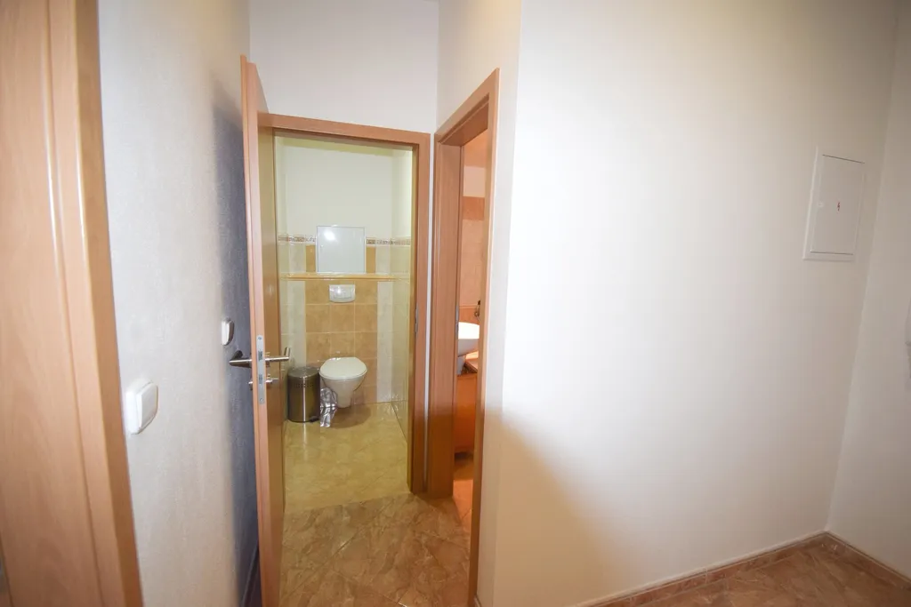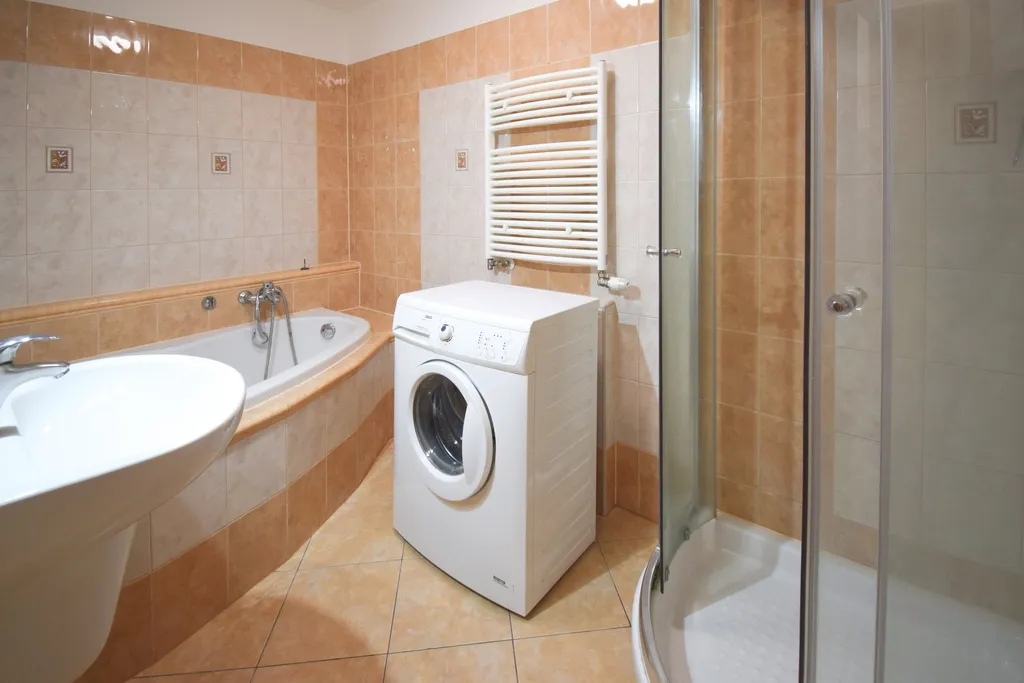 Byt disponuje předsíní, 2 pokoji, kuchyňským koutem, samostatným wc a koupelnou s vanou i sprchovým koutem. K bytu náleží lodžie a sklepní jednotka. Byt se nabízí částečně vybavený, kuchyňská linka je součástí.