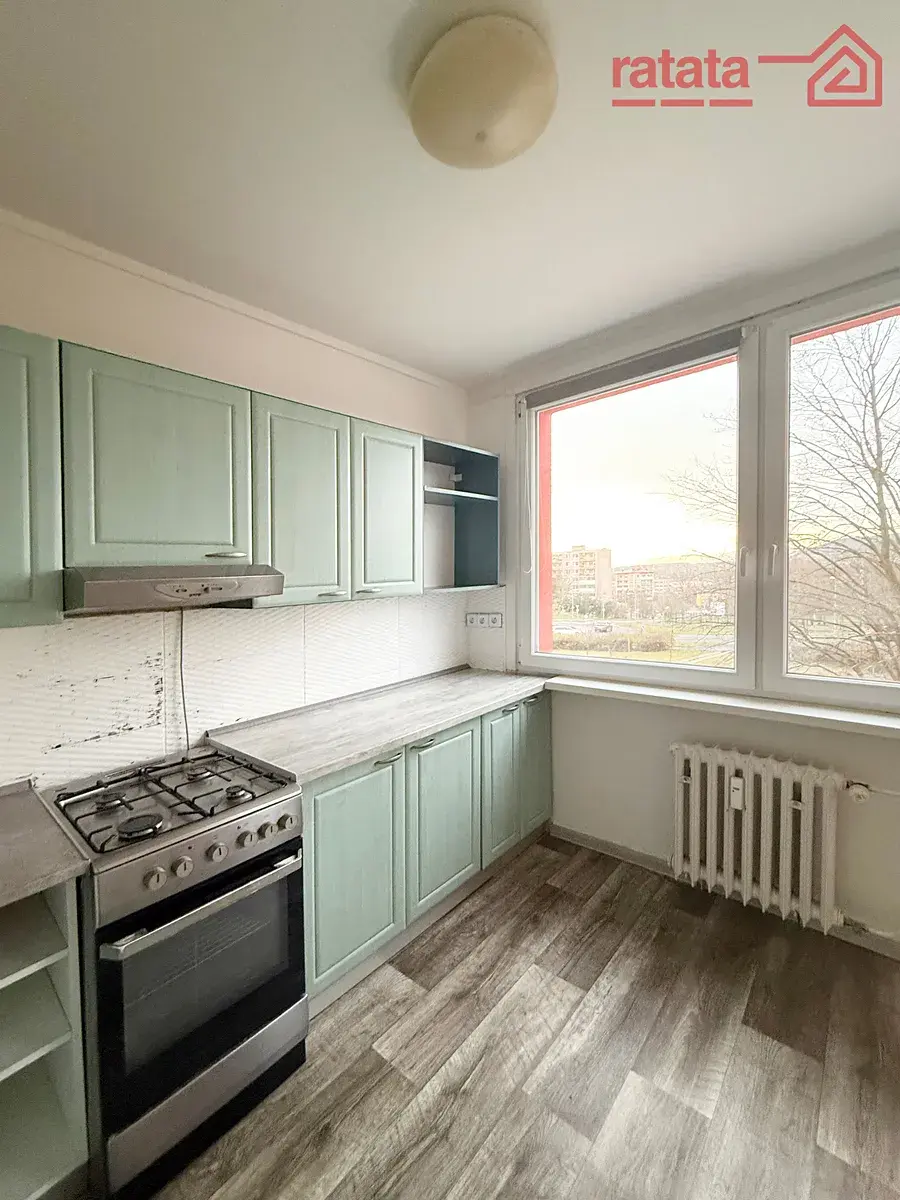 Je to čistý a slunný byt. Je zde kuchyňská linka, plynový sporák, vana, umyvadlo a WC. Na podlahách je položeno lino a dlažba. Byt je volný k nastěhování IHNED.