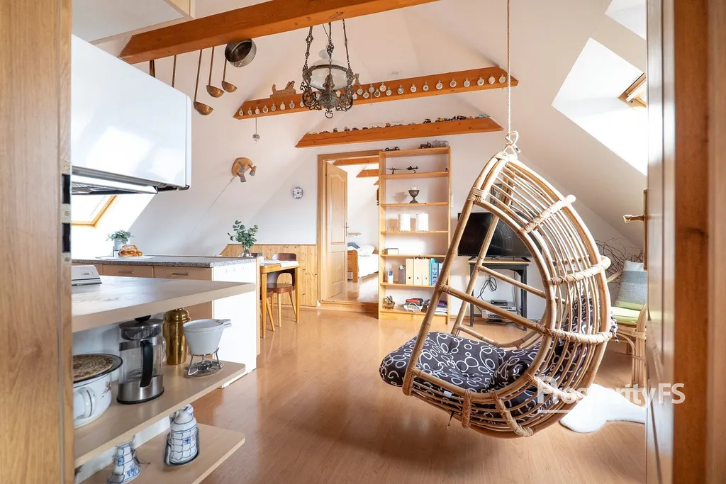 • Byt v 1. NP je ve starším, typicky venkovském stylu, s kouzelnou atmosférou a tradičním vybavením. Byt je přesto plně funkční a samostatný včetně plnohodnotné kuchyně, toalety a sprchového koutu.