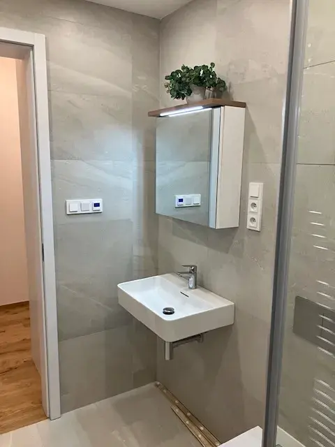Byt se nachází ve 4.NP a splňuje vysoký standart kvalitního bydlení( podlahové krytiny, moderní koupelna- podlahové vytápění).