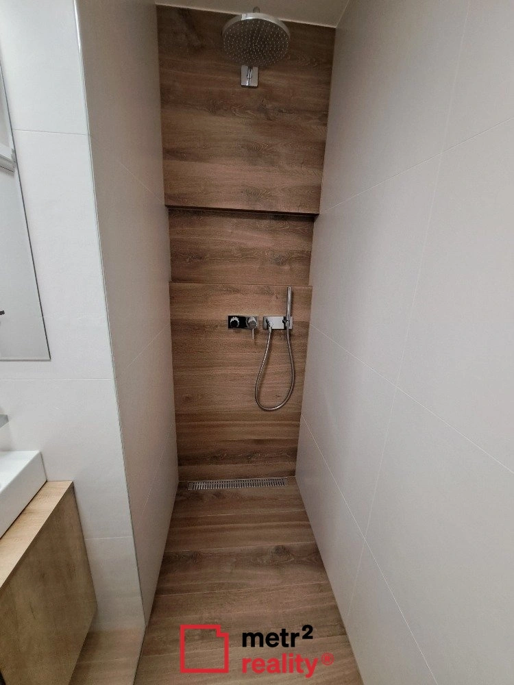 Koupelna je zděná s prostorným sprchovým koutem a umyvadlem. Toaleta je samostatná.