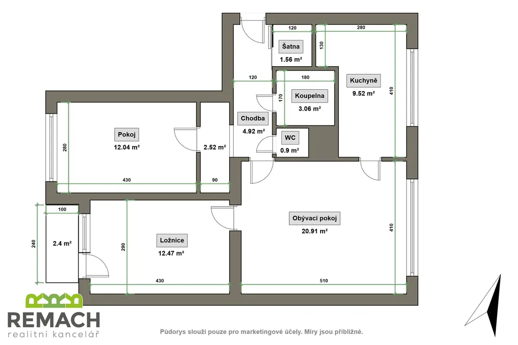 Prodej bytu 3+1, Uherské Hradiště - Jarošov, Markov, 80 m2