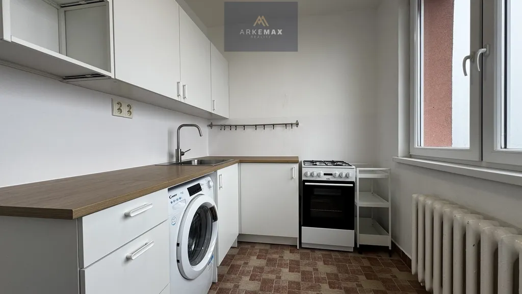 Kuchyňská linka je nová (léto 2025) a je vybavena sporákem s troubou, lednicí s mrazákem a pračkou, vše jako nové. Jinak je byt připravený k vybavení dle vlastních představ.