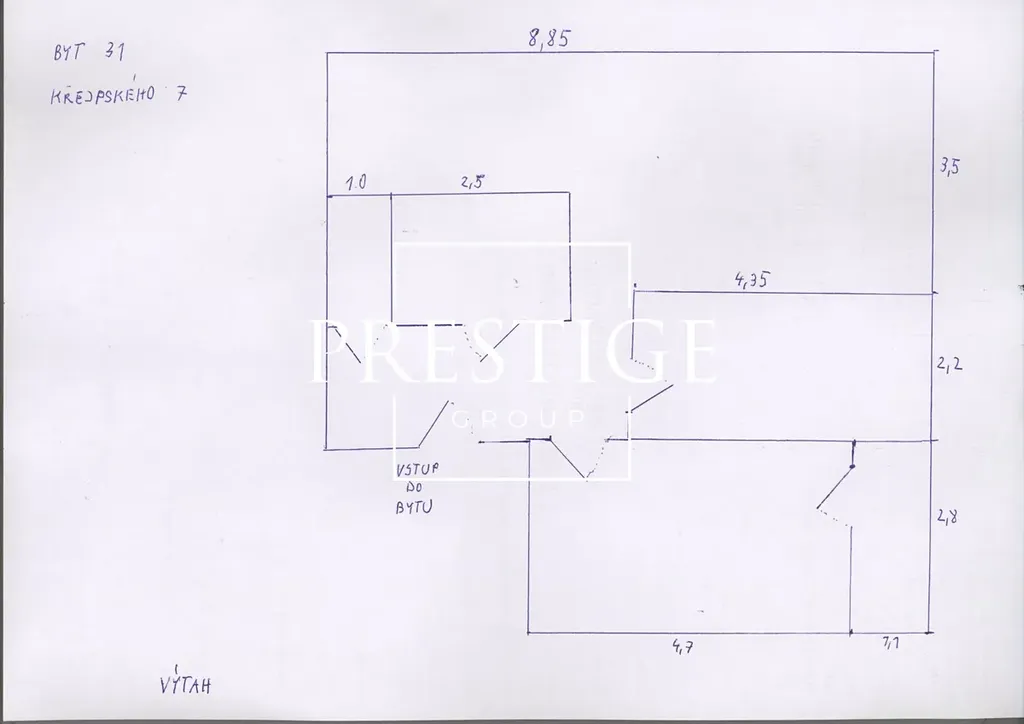 Byt o užitné ploše 68 m² je situován v 7. patře panelového domu s výtahem. Pronajímá se nezařízený, součástí je pouze kuchyňská linka se spotřebiči. Disponuje dvěma neprůchozími pokoji. Koupelna je vybavena vanou a umyvadlem, toaleta je umístěna samostatně. V bytě je zároveň možné spolubydlení.