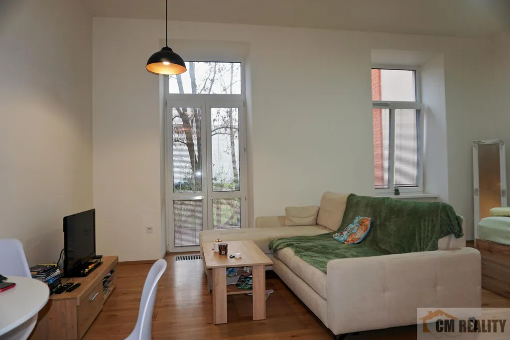 Byt prošel kompletní rekonstrukcí v roce 2022 a nabízí komfortní bydlení s koupelnou spojenou s WC, kuchyňskou linkou vybavenou elektrickou troubou, indukční deskou a digestoří. Interiér dotvářejí plovoucí podlahy a designová světla. V domě jsou plastová okna a centrální vytápění s ohřevem vody. Obývací pokoj má je propojen s prostorem kuchyně a má 30 m2. Na chodbě jsou instalovány vestavěné skříně, zajišťující dostatečné úložné prostory. K bytu náleží prostorná terasa.