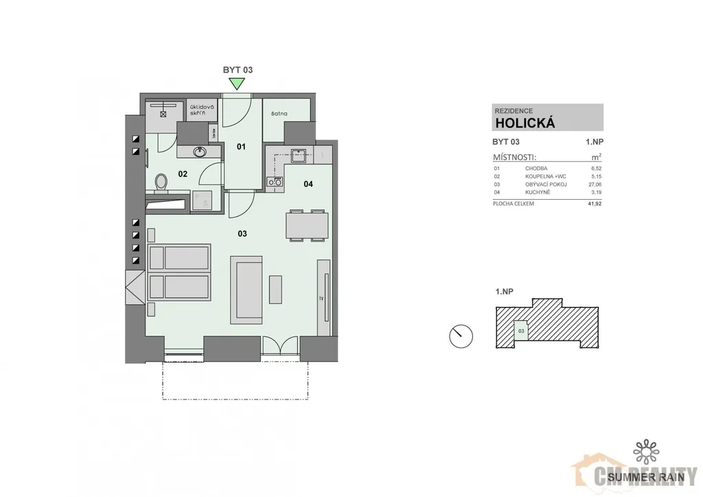 Nabízíme k pronájmu moderně zrekonstruovaný byt 1+kk o velikosti 42 m, situovaný v přízemí Rezidence Violka.