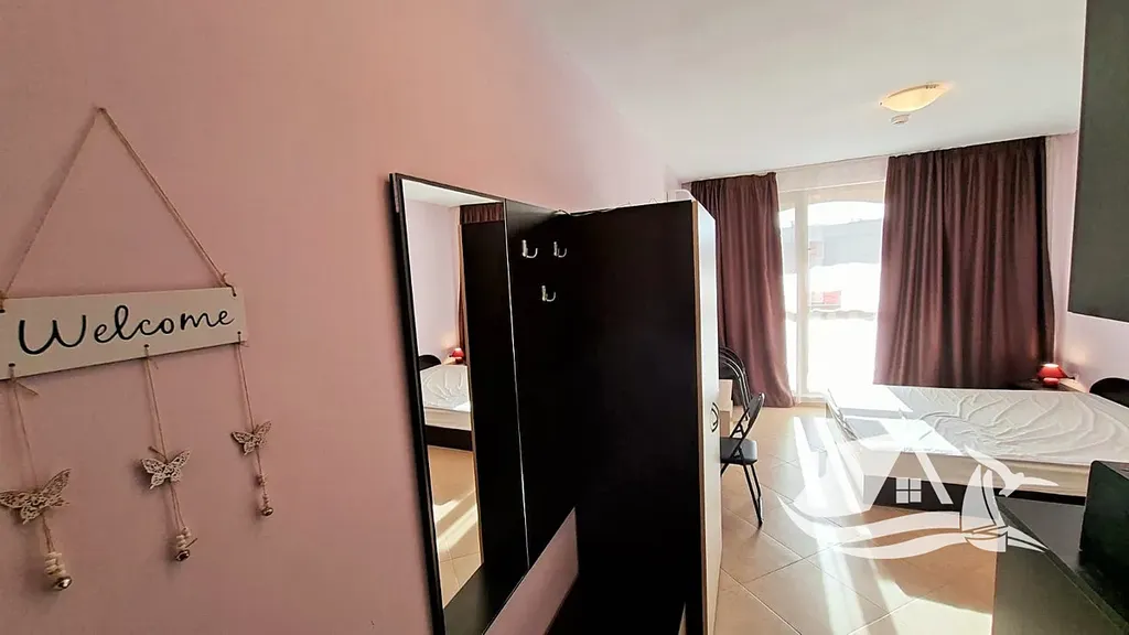 Pláž je vzdálena přibližně 800 metrů – dost blízko na každodenní návštěvy, a přitom v dostatečné vzdálenosti od ruchu hlavní promenády. Slunečné pobřeží je největším letoviskem Bulharska, známé dlouhou písečnou pláží, teplým mořem a širokou nabídkou aktivit. V blízkosti se nachází i romantický Nessebar zapsaný na seznam UNESCO, ideální pro večerní procházky.