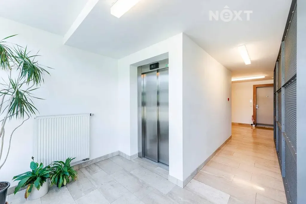 Dům má výtah, celý komplex má vlastní 24/7 ostraha, recepci, vstupy i vjezdy na čip.
