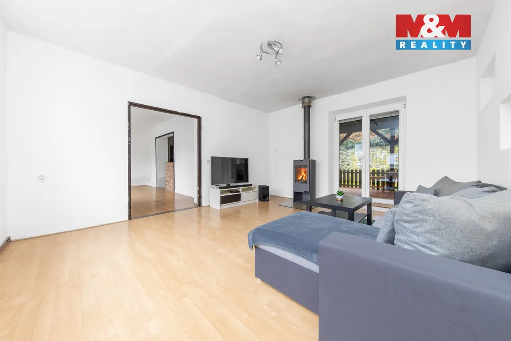 Interiér nabízí příjemnou atmosféru a v jednom z pokojů zaujmou původní klenby, které podtrhují charakter domu. Obývací pokoj má přímý vstup na terasu, což zajišťuje pohodlné propojení se zahradou a vytváří ideální prostor pro relaxaci i rodinné posezení.