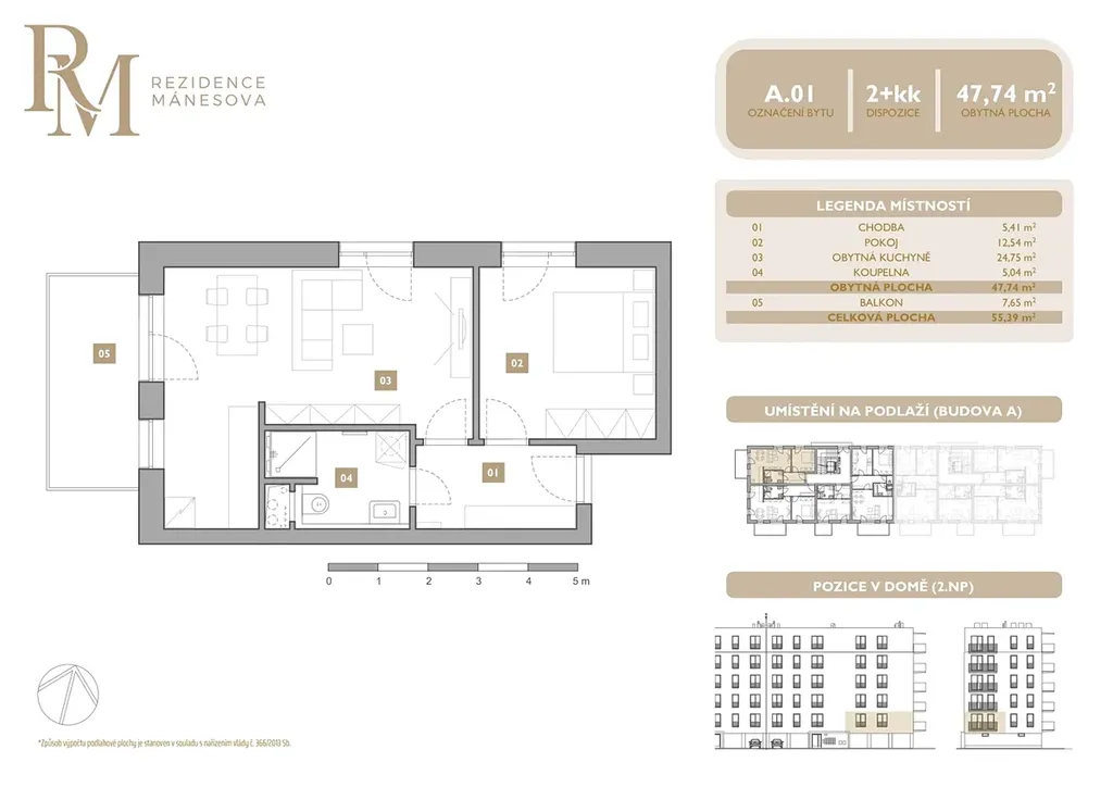 Součástí prodeje je nutnost zakoupení venkovního parkovacího stání, k bytu lze dále dokoupit sklepní kóji. Rezidence se nachází v klidné části města s kompletní občanskou vybaveností – obchody, školy, restaurace i zastávka veřejné dopravy jsou v docházkové vzdálenosti. Byty 2+kk kombinují kvalitní zpracování, příznivou cenu a moderní styl bydlení. Dokončení výstavby 12/2026.