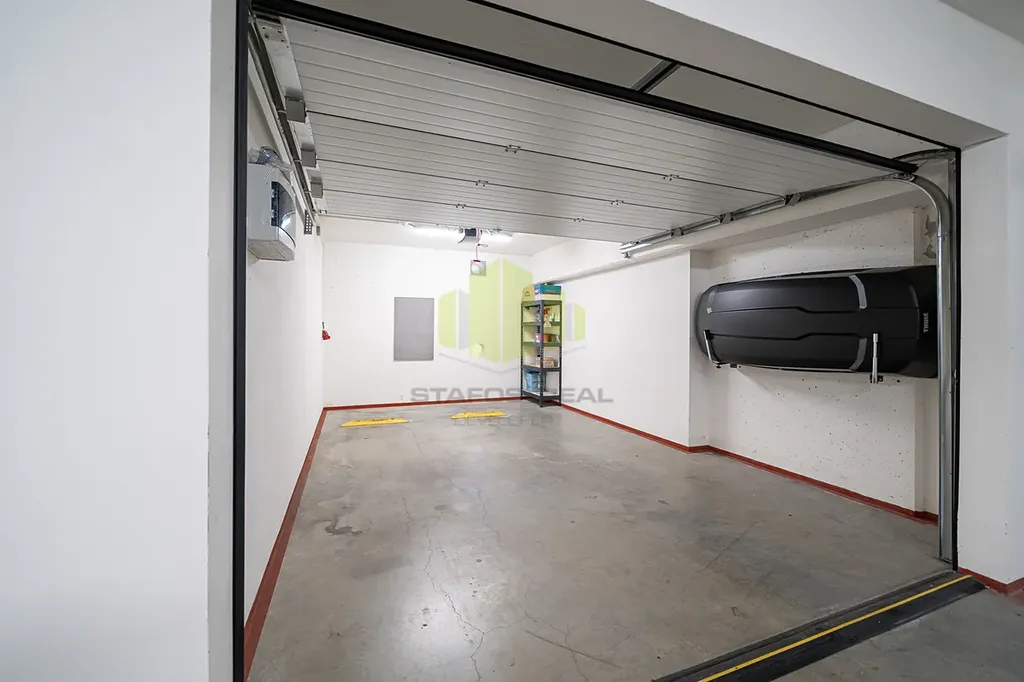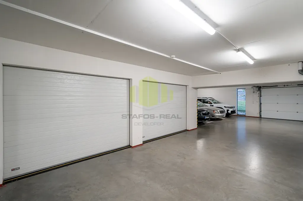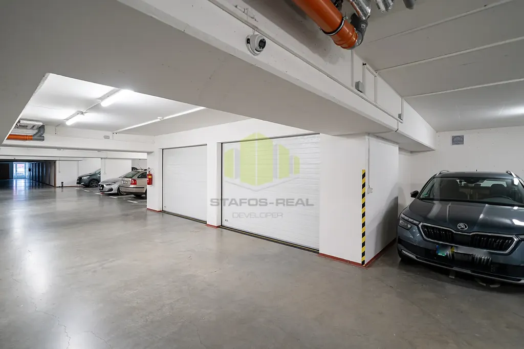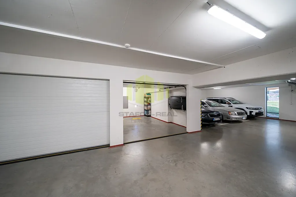 Součástí je také příprava na instalaci elektro autonabíječky (380 V). Vjezd do hromadné garáže je zabezpečen společnými vraty na dálkové ovládání a celý prostor je monitorován kamerovým systémem. Přístup i manipulace jsou pohodlné a bezpečné. Prostor je ideální nejen pro parkování automobilu, ale také pro uskladnění motocyklu, kol nebo sezónních věcí.