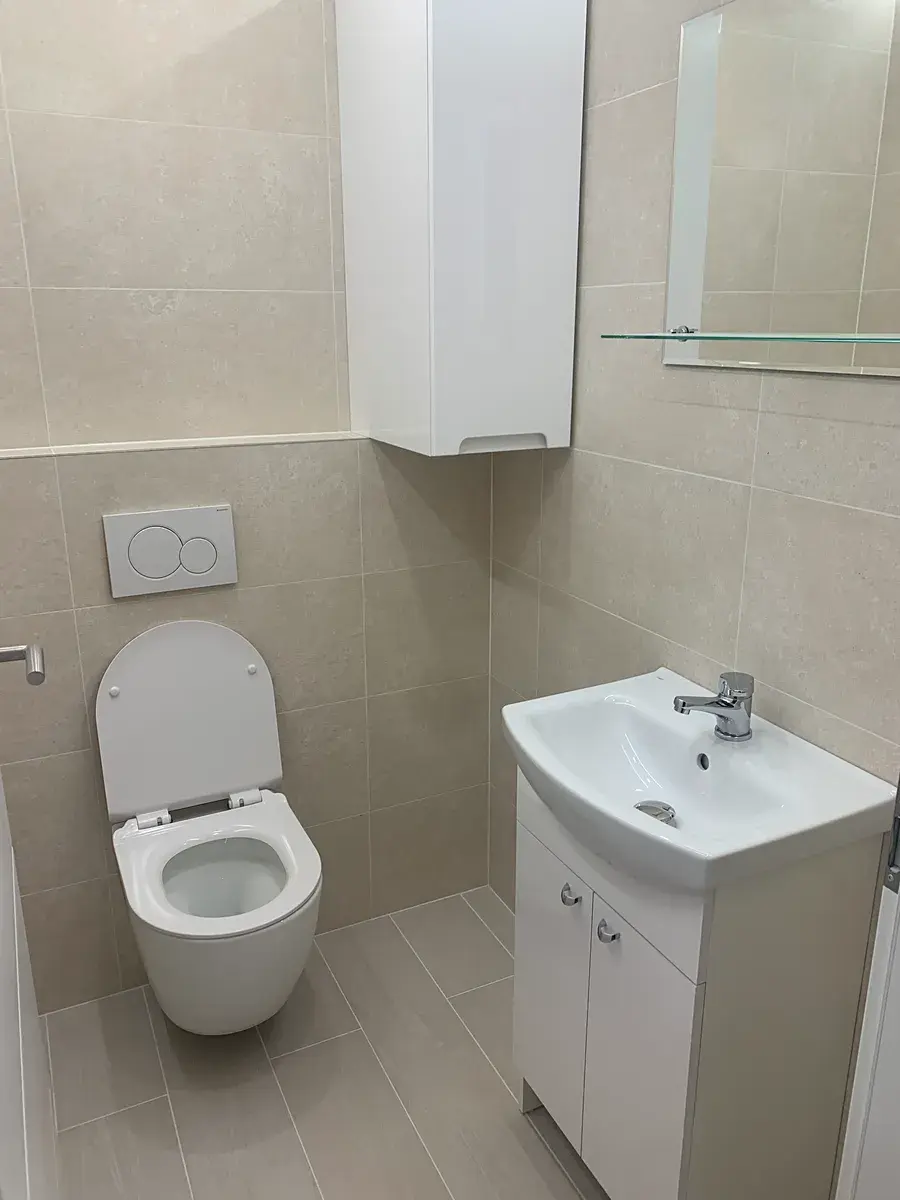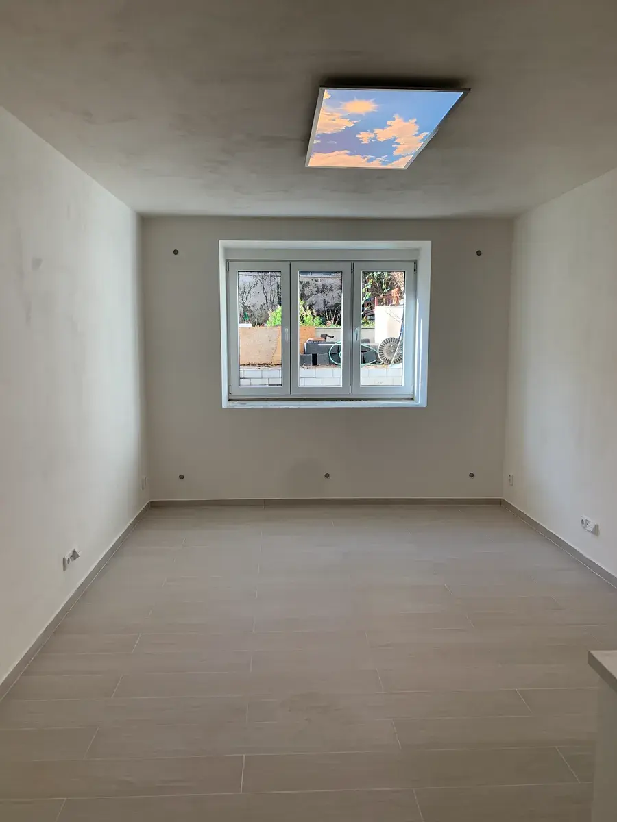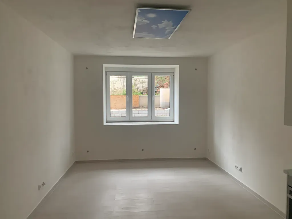 Studio se nachází v suterénu klidného činžovního domu. Sestává z chodby 5,23 m2, pokoje s kuchyňským koutem 18 m2, koupelny 2,3 a WC 1,7 m2. Je nově zrekonstruováno, bez vlhkosti (byla provedena hydroizolace domu). Ve studiu jsou plastová okna s izolačními trojskly, studio je vytápěné centrálním topením s kotlem na elektřinu a v celém prostoru je podlahové topení. V průběhu léta není třeba klimatizace a teplo v zimě zajišťuje podlahové vytápění.