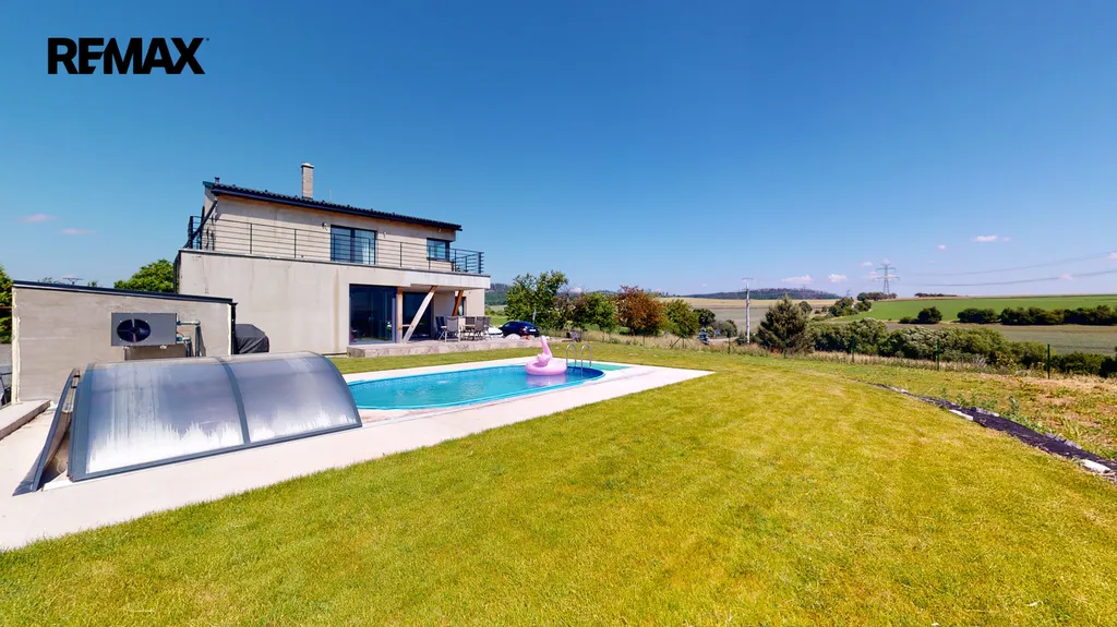 Dům byl zkolaudován v roce 2019 a je zhotoven ve vysokém nadstandardu, zahrnující kompletně vybavenou kuchyňskou linku s keramickou deskou ( spotřebiče AEG + Whirlpool ), v hodnotě 600 000,-Kč, dubové podlahy, schody, obklady, parapety, dveře, sanita značky Villeroy & Boch. V dětských pokojích, ložnici a šatně jsou instalované vestavěné skříně, v každém pokoji je vyvedena kabelová přípojka internetu, dále příprava na zabezpečovací zařízení, centrální vysavač a krb (zkolaudovaný komín). V domě je potřeba dokončit horní koupelnu, dále je realizována příprava ( kastlíky a elektrorozvody, ovládané přes tablet ) na vnější žaluzie, které stačí dokoupit a nainstalovat.