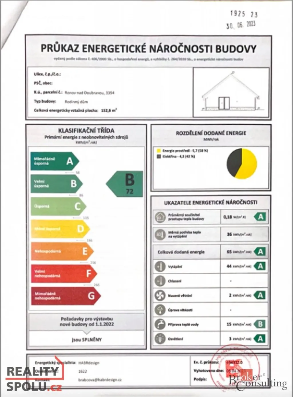 • nízké provozní náklady: tepelné čerpadlo Vaillant, podlahové topení, PENB B, vodovod a kanalizace