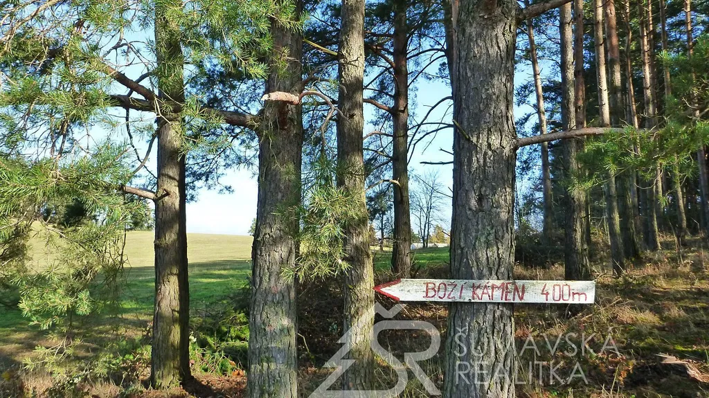 Lokalita: Štěchovice – Boží kámen -místo skryté na úpatí Šumavy, cca 25 km od Kašperských Hor. Modravé pásmo jejích vrcholků lemuje horizont výhledu z velké louky obklopené lesem, na níž jsou rozptýlené tři původní šumavské chalupy. Jedna z usedlostí je trvale obydlená. Za chalupou přechází louka do zalesněného úbočí, kde se nachází silně pozitivní energetické místo Boží kámen s ozdravnými účinky na člověka, které je zmiňováno i v odborných publikacích. Ze stezky vedoucí k Božímu kamenu, je nabízená chalupa vzdálena několik set metrů, ale je z ní téměř neviditelná. Lokalita je prosvětlená klidem a pohodou. Velmi dobře je autem dostupná i v zimních podmínkách.