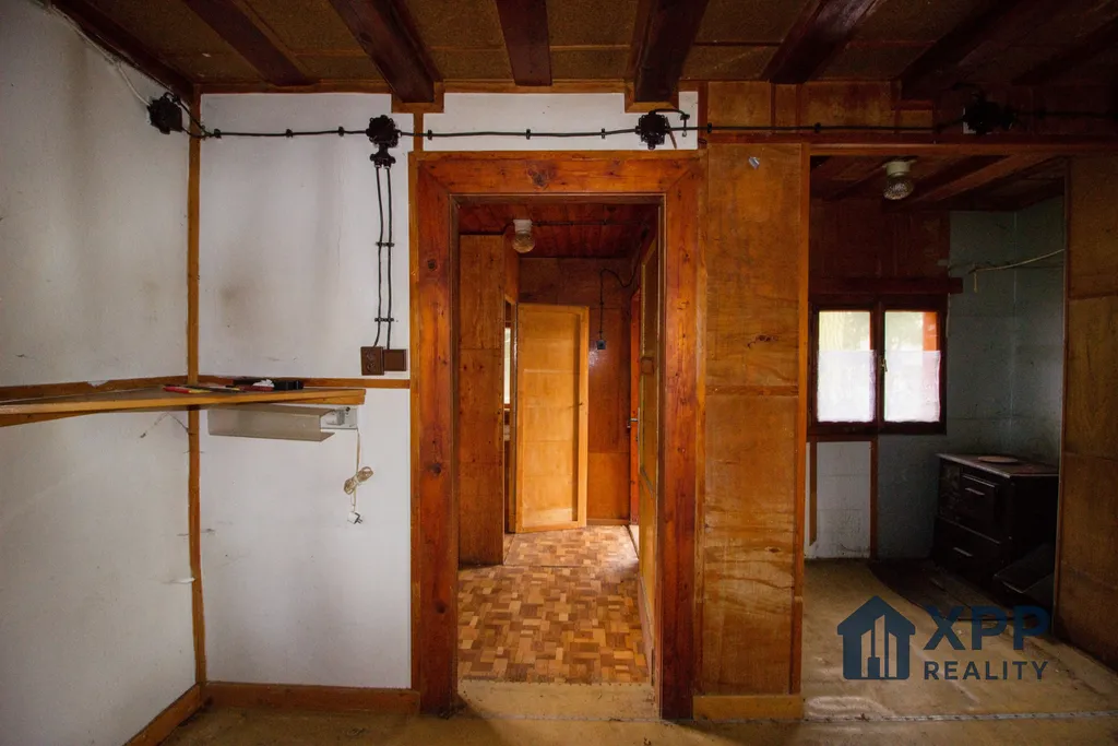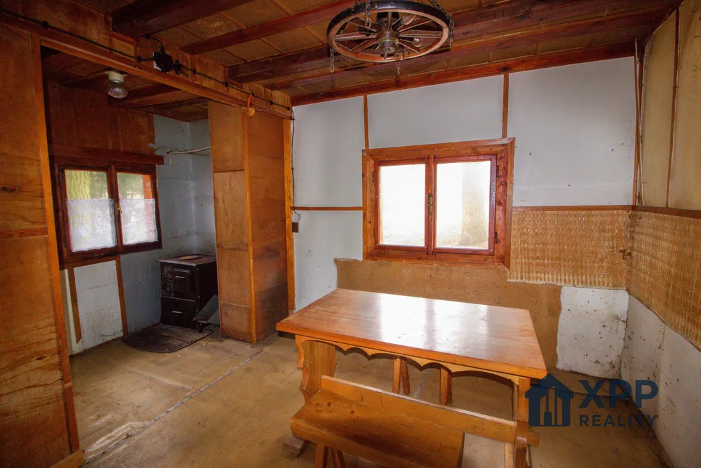 Chata nabízí jednoduchou, ale funkční dispozici – vstupní veranda, hlavní obytná místnost, prostor původní kuchyně s kamny na tuhá paliva, menší místnost vhodná jako ložnice, technická nika a toaleta se septikem. V podkroví se nachází prostorný otevřený pokoj (11 m²).