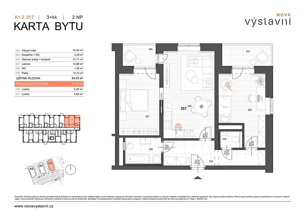 • Dispozice 3+kk s podlahovou plochou 71,6 m2