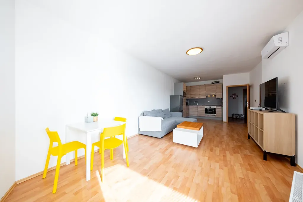 Byt je moderní. Nabízí prostorný obývací pokoj s východem na terasu, neprůchozí pokoje, moderní koupelnu s vanou, WC samostatně. Kuchyň, spojená s obývacím pokojem, je moderně zařízená. Byt je kompletně vybaven.