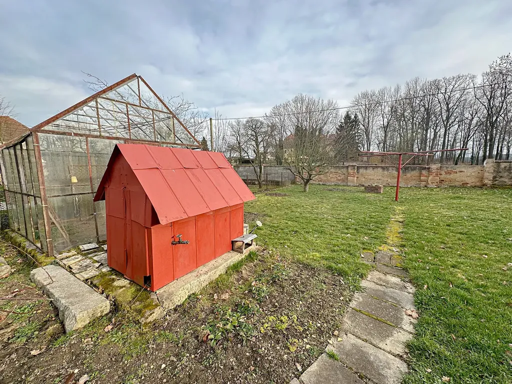 Pozemek: - garáž až pro dvě auta – dvůr – velká zahrada, kde je možné i například nainstalovat bazén – venkovní kůlna a menší výběh podél boční strany domu, který je možné použít kupříkladu k chování slepiček