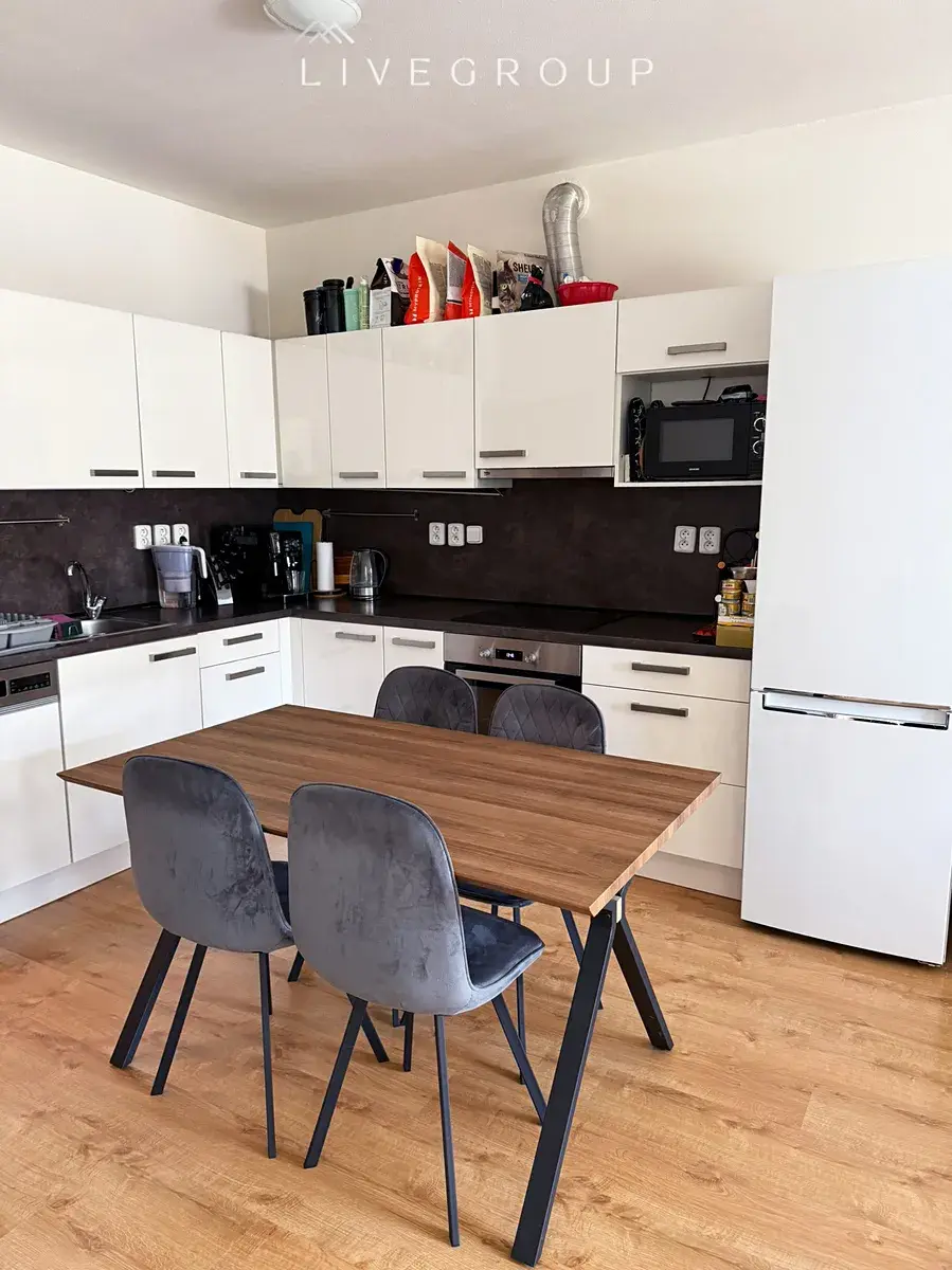 Kuchyně je vybavena kuchyňskou linkou, k dispozici je indukční varná deska, digestoř a horkovzdušnou troubou. Jinak je byt nevybaven.