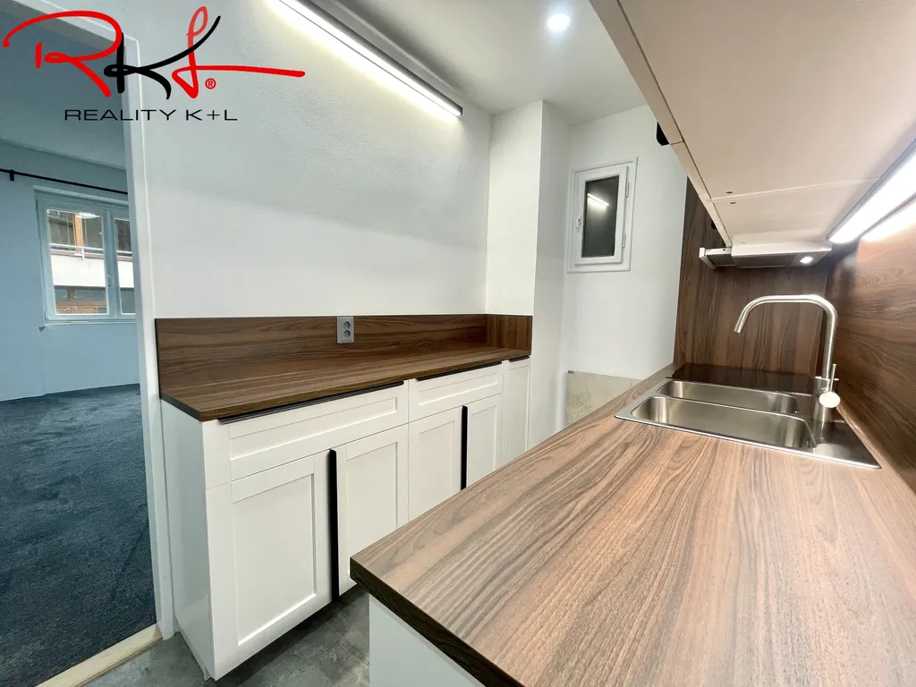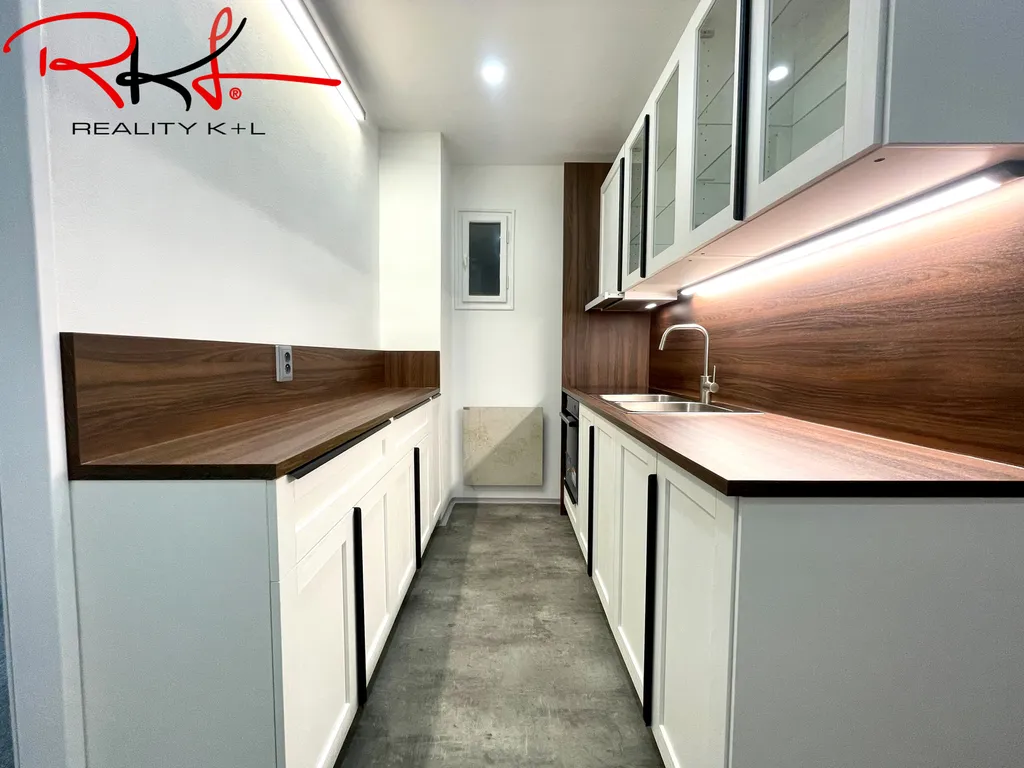 Vstupní chodba s vestavěnou skříní a vstupem do obou místností. Nová kuchyňská linka vybavena novými spotřebiči (trouba, varná deska, digestoř, příprava na pračku), dále prostorné pokoje s úložným prostorem, nová koupelna se sprchovým koutem a toaleta.