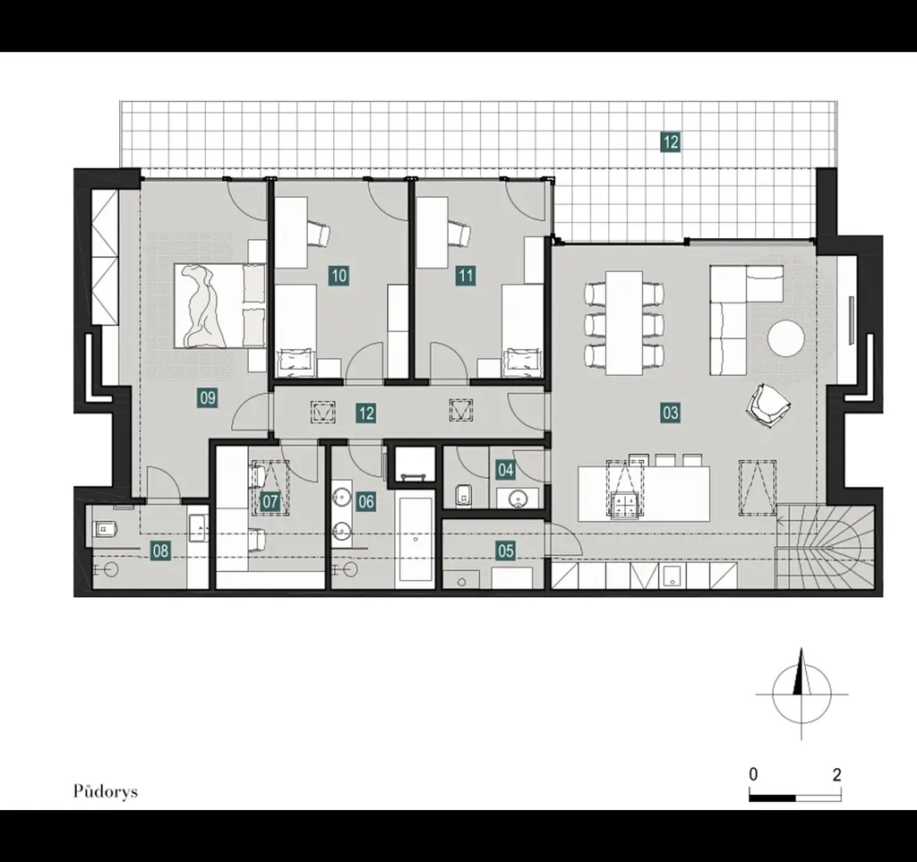 - Podlahová plocha 137 m² a celková plocha 174 m²