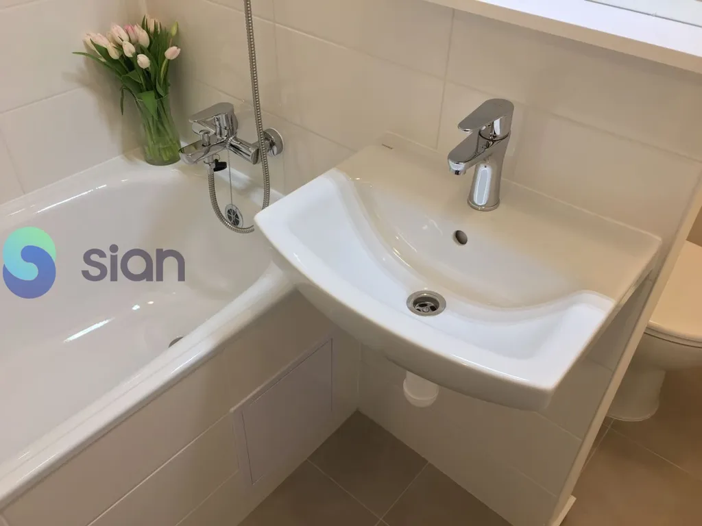 Byt je po rekonstrukci a má vyzděné jádro, podlahy, rozvody, omítky, interiérové dveře. Koupelna s vanou a umyvadlem s osvětlením, toaleta je součástí koupelny oddělená přepážkou. Kuchyňská linka je opatřena plynovým sporákem a elektrickou troubou s možností připojení pračky.