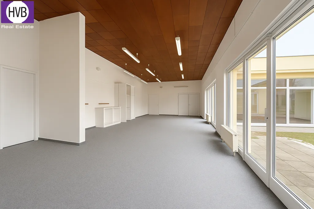 Prostory jsou vhodné pro skladování, prodejnu nebo jinou komerční Činnost. K dispozici jsou ihned.