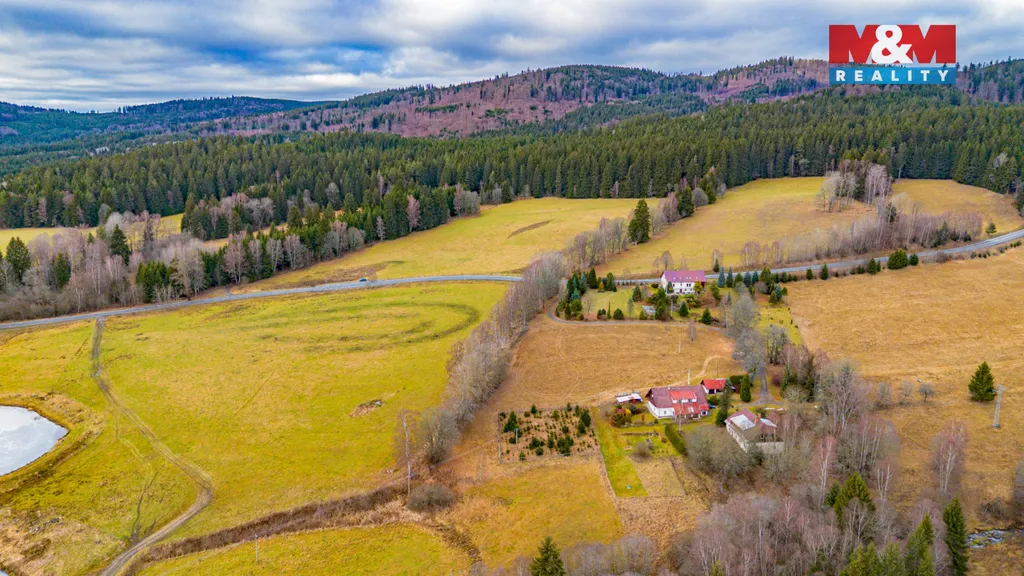 Nabízím k prodeji pozemek k bydlení, na kterém stojí dům o podlahové ploše 400 m2. Dům je vhodný k velké rekonstrukci, nebo k celkové demolici a následnému vystavění novostavby. Územním plánem je stávající zástavba označená jako SO – smíšená obytná umožňující jak bydlení, tak ubytování a drobné podnikání. Součástí prodeje může být postoupení pronájmu sousedního pozemku - louky o výměře 5000 m2. Elektřina vede v těsné blízkosti pozemku, na pozemku je vrt s pitnou vodou. Pozemek sousedí s Kubohuťským potokem, za kterým začíná pásmo lesů s pralesem a horou Boubín.