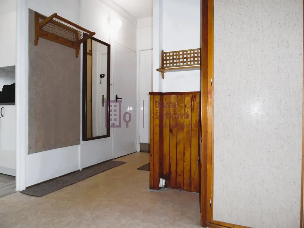 Byt je vybavený kuchyňskou linkou s elektrickým sporákem a vestavěnými skříněmi v chodbě.