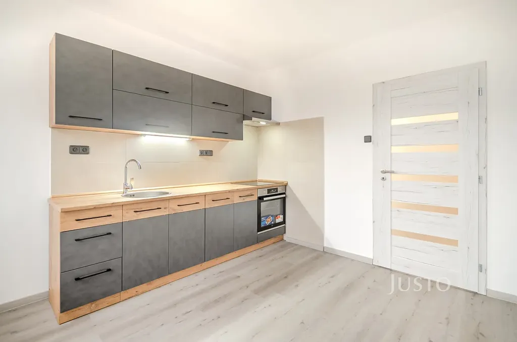 - Nová kuchyňská linka s vestavěnými spotřebiči: elektrická trouba, indukční varná deska.