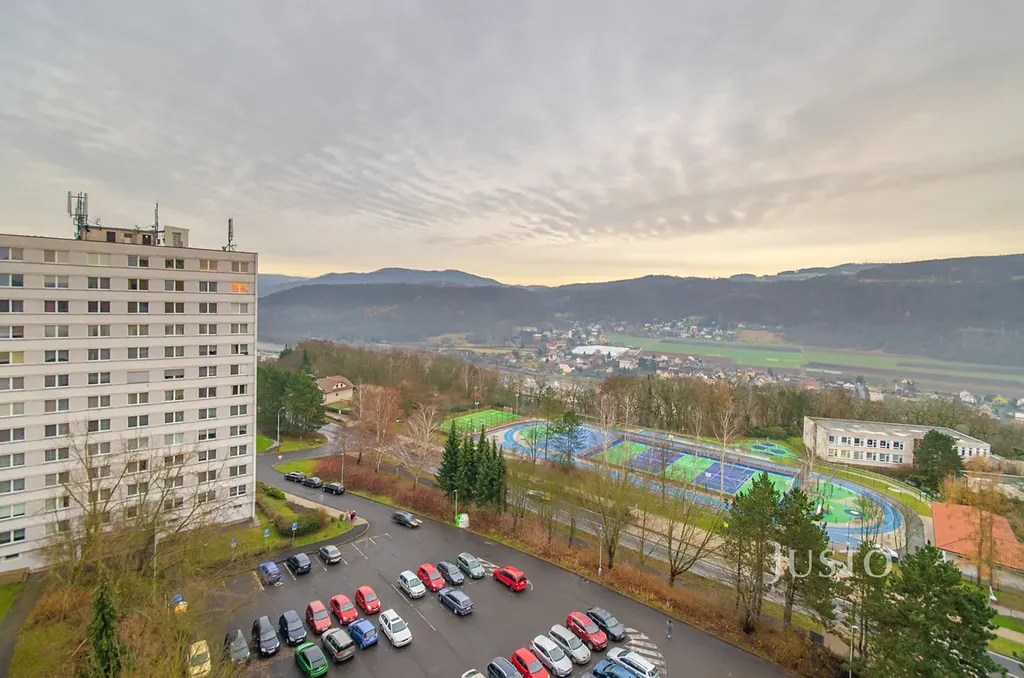 Byt se nachází v 11. patře z 12, což zajišťuje příjemný výhled na okolí a přírodu, orientovaný na východní stranu.
