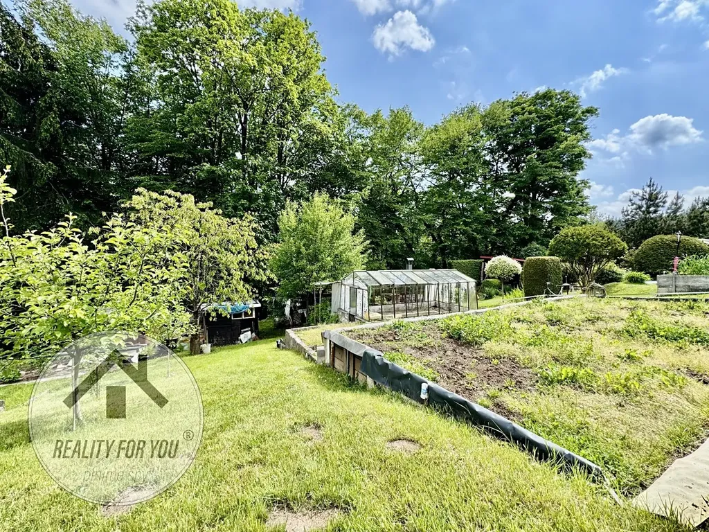 Pozemek o výměře 400 m2 je lehce svažitý a nabízí absolutní soukromí a v letních měsících sluníčko. V centrální části zahrádky najdeme terasovité záhony a ve spodní části skleník a kůlnu. Na zahradě jsou maliny, ostružiny, jahody, rybíz, jabloně, třešeň či švestka. Majitelé mají na pozemku vlastní udírnu.