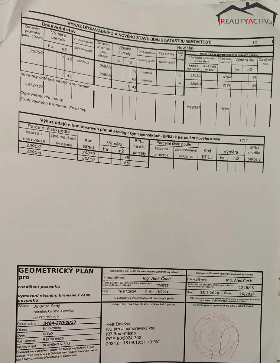 Ve výhradním zastoupení nabízíme k prodeji stavební pozemek o CP 75m2 v Brně-Řečkovicích, na ulici bratří Křičků . Na pozemku stojí zemědělská stavba, která je určená k demolici. Přístup k pozemku je po obecní zpevněné cestě, cca 4m po obecní nezpevněné cestě a dále cca 1,25m po nezpevněné cestě přes jiného vlastníka, přes kterého bude právně ošetřen přístup, popřípadě na základě nového geometrického plánu je možnost podélnou přední část pozemku rozparcelovat a mít zřízen vjezd na pozemek z obecní cesty, což je předjednané s majitelem pozemku. . IS - v těsné blízkosti stavby. Jedná se o rovinatý pozemek a je určený ke stavbě RD. V blízkosti je bytový dům, ZŠ, MŠ, autobusová zastávka, veškerá občanská vybavenost.