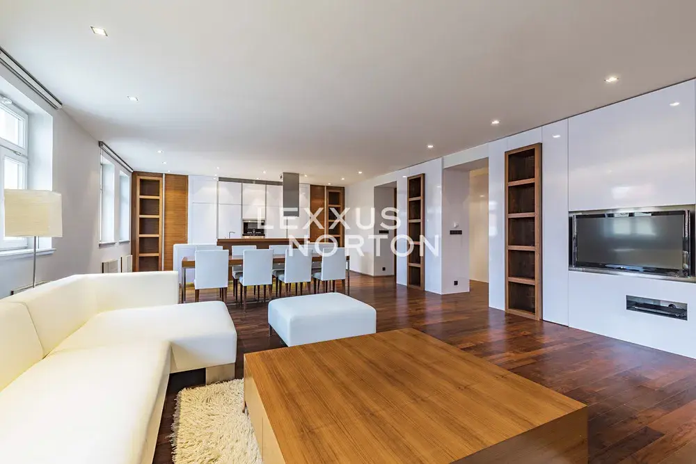 Nabízíme k pronájmu designový zařízený byt 4+kk k pronájmu o velikosti 178 m2 se 2 terasami (13 m2) situovaný na celém 5. patře zrekonstruované secesní budovy s výtahem. Nemovitost se nachází v populární lokalitě Prahy 3 - Žižkov v blízkosti parků a se skvělou dopravní infrastrukturou.