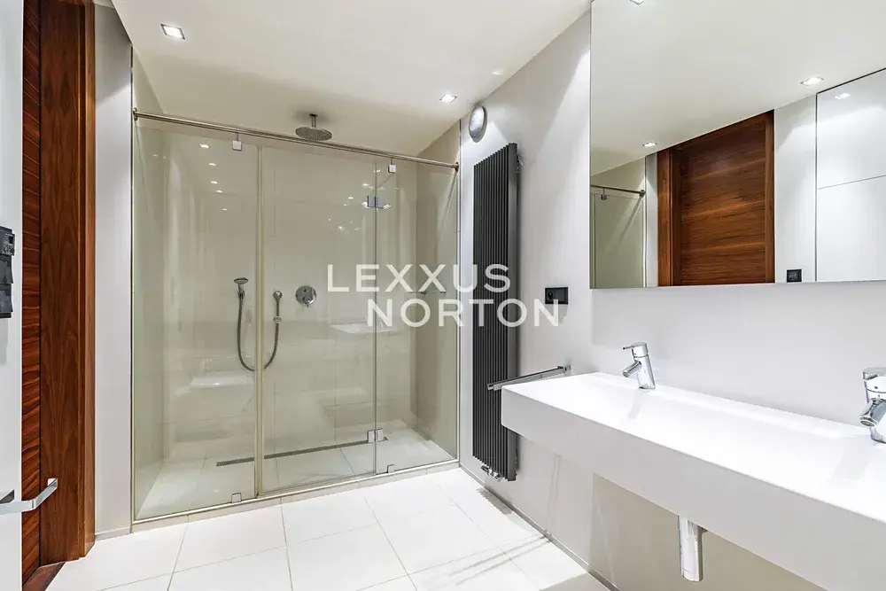 Interiér bytu byl navržen renomovaným studiem DESIGN by DONLIĆ. Jednotka nabízí vzdušný obývací pokoj spojený s plně vybavenou kuchyňskou linkou a jídelním prostorem, tři ložnice, pracovnu, šatnu, dvě koupelny a toaletu pro hosty. Jihozápadně orientované terasy s krásným výhledem na Žižkovskou věž. Samostatná garáž je zahrnuta v ceně nájemného.