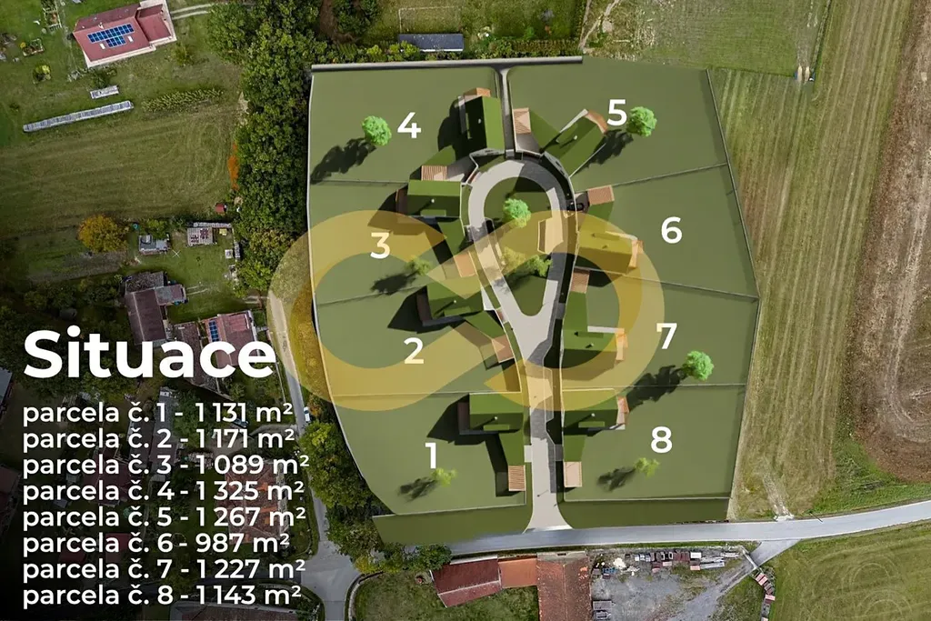 Každý z domů nabídne vlastní zahradu o výměře od 990 do 1 350 m², ideální pro relaxaci nebo rodinné aktivity, a také zastřešené parkovací stání pro vaše pohodlí.