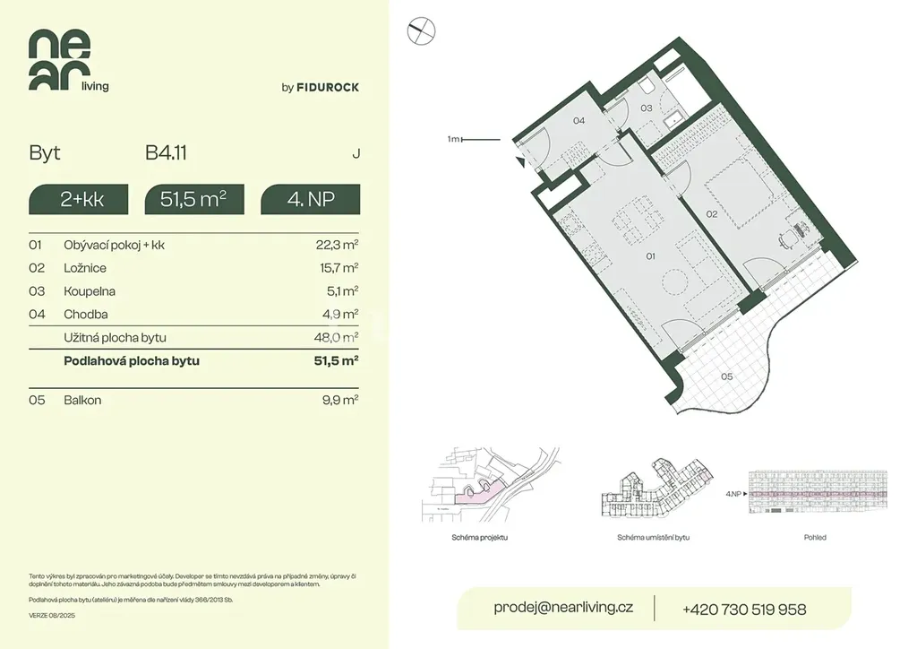 Nabízíme k prodeji byt 2+kk o podlahové ploše 51,5 m² s balkonem 9,9 m² v developerském projektu NEAR living v Praze 8, vznikajícím na pomezí Palmovky a Karlína.