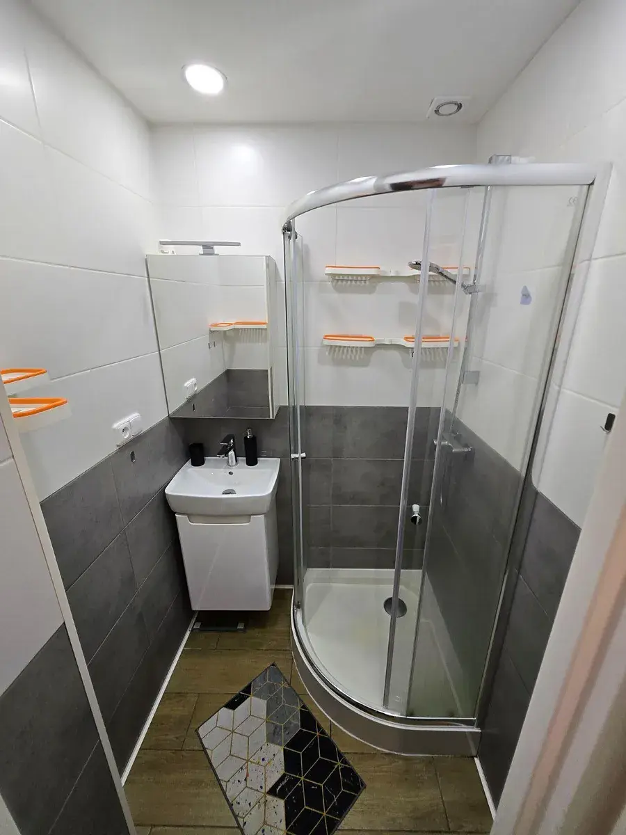 V kuchyni je velice vkusná a moderní kuchyňská linka s elektrickými kamny a varnou deskou, součástí vybavení kuchyně je jídelní stůl a židle. V koupelně je sprchový kout, umyvadlová skříňka se zrcadlem, WC odděleno. Ložnice vybavena dvoulůžkovou postelí, velkou šatní skříní, nočními stolky a komodou. Místnosti jsou světlé a prostorné.