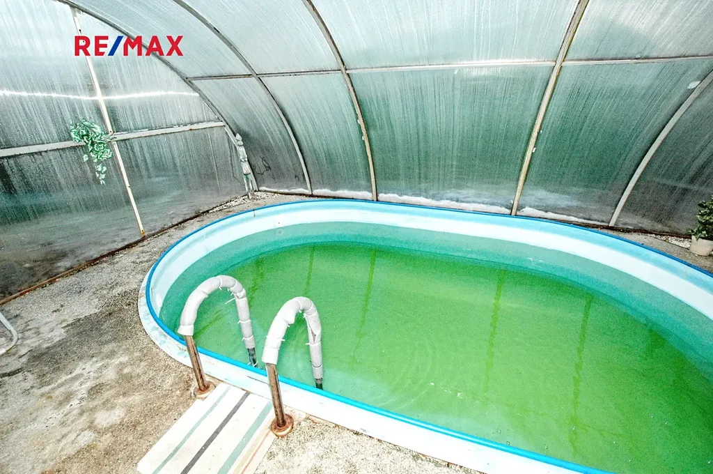 bazén, dílna, zastřešené parkovací místo a pergola. Do domu jsou zavedeny veškeré