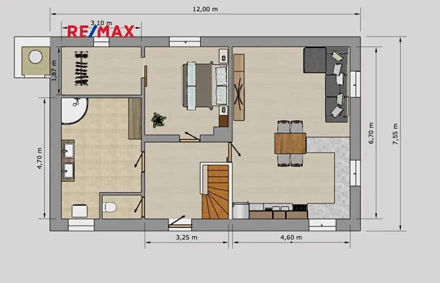 rovinatém pozemku o rozloze 774m2. Součástí objektu je také krytý, vyhřívaný, venkovní