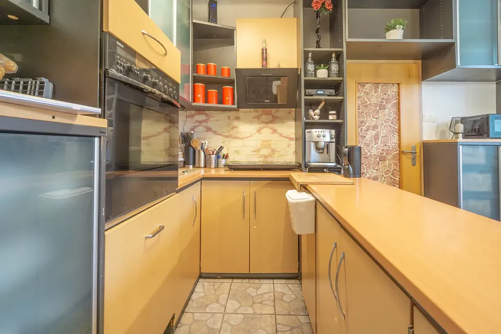 Menší bytová jednotka nabízí pohodlné bydlení v dispozici 2+kk. Najdete zde chodbu (4 m²), ložnici (10,4 m²), pokoj (15,2 m²), kuchyni (10,2 m²) a koupelnu s WC (3,8 m²). Dohromady 43,2m2.